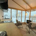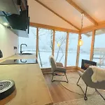 This chalet comes with a bathroom with a separate toilet and a shower. There are also hairdryers and towels.